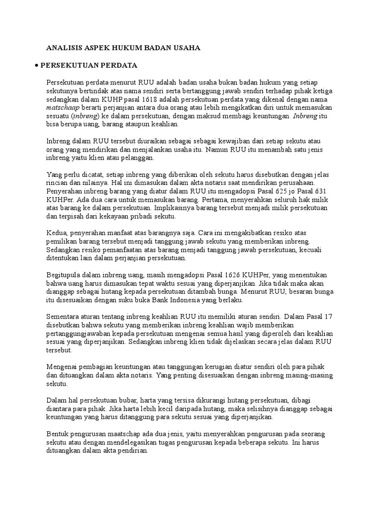 Analisis Aspek Hukum Badan Usaha