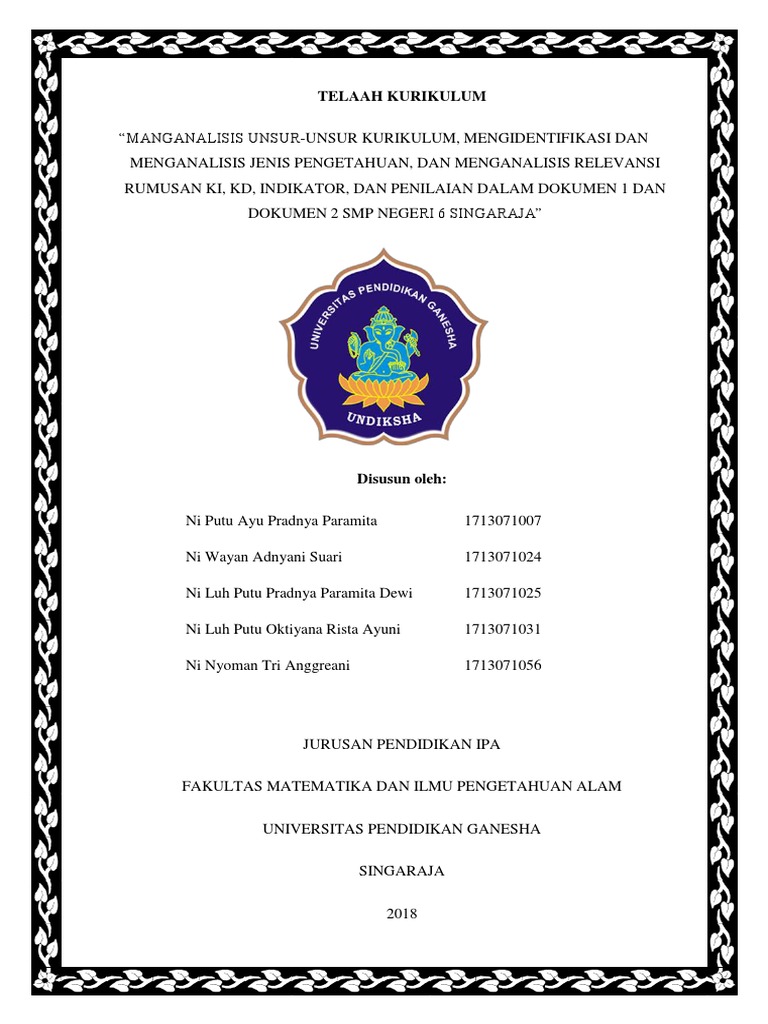 Laporan Analisis Unsur-unsur Kurikulum Dokumen 1 Sekolah
