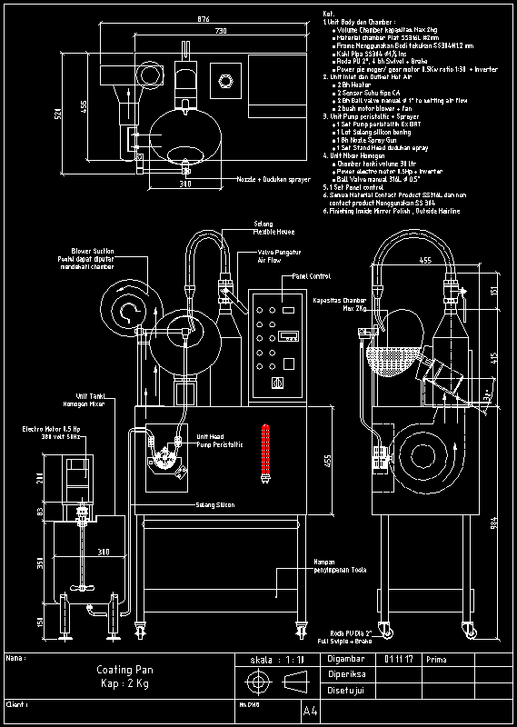 GAMBAR TEKNIK CAD: GAMBAR TEKNIK MESIN COATING PAN SKALA LAB MENGGUNAKAN AUTO CAD