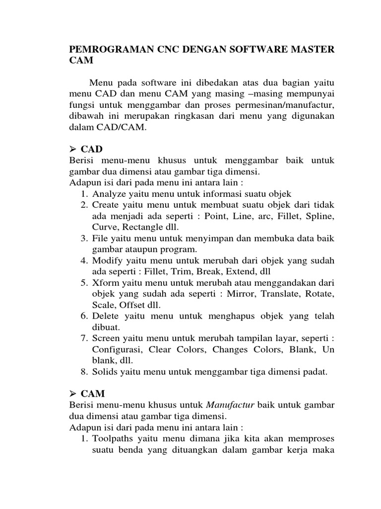 Pemrograman Cnc Dengan Software Master CAM