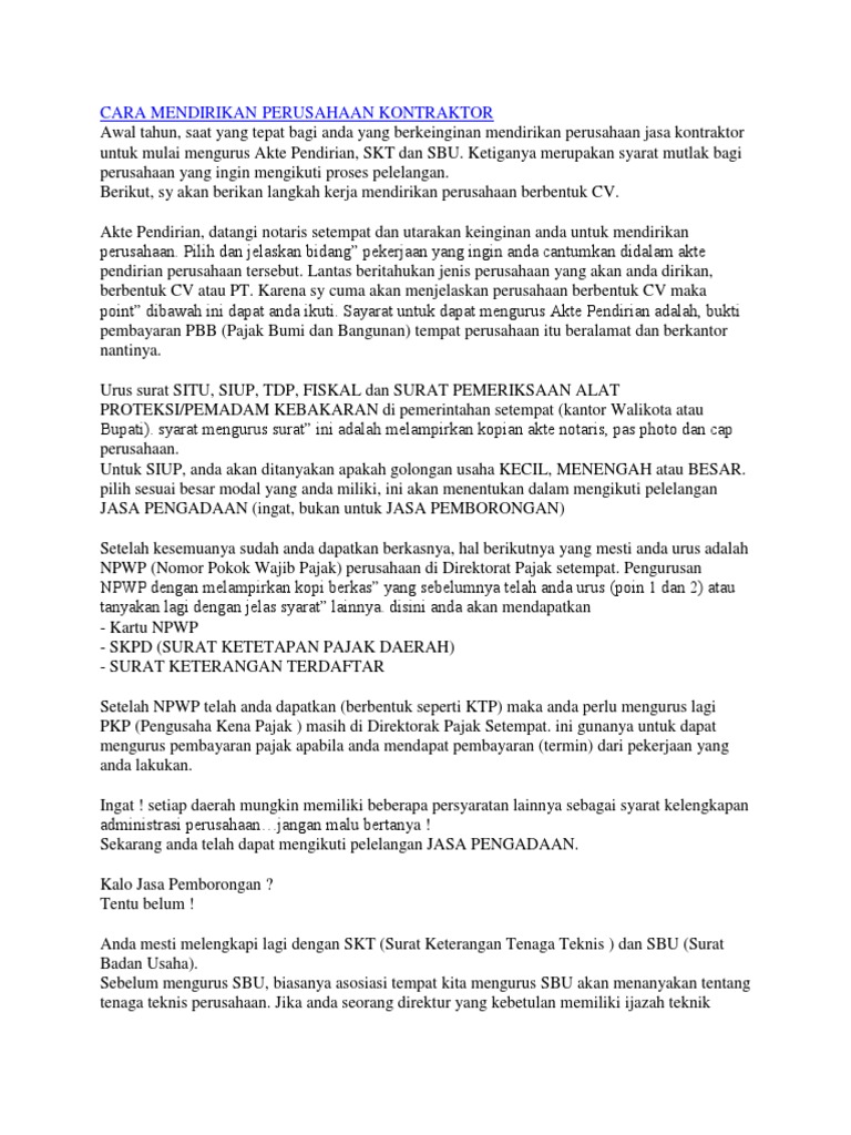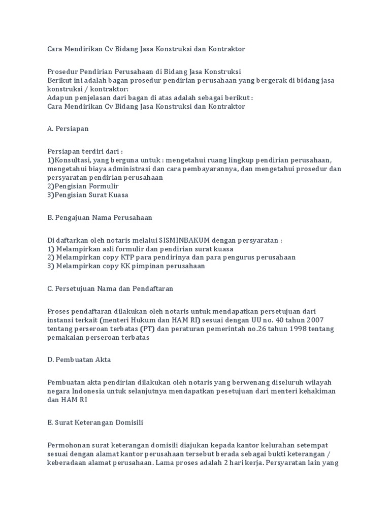 Cara Mendirikan Cv Bidang Jasa Konstruksi Dan Kontraktor - [DOCX Document]