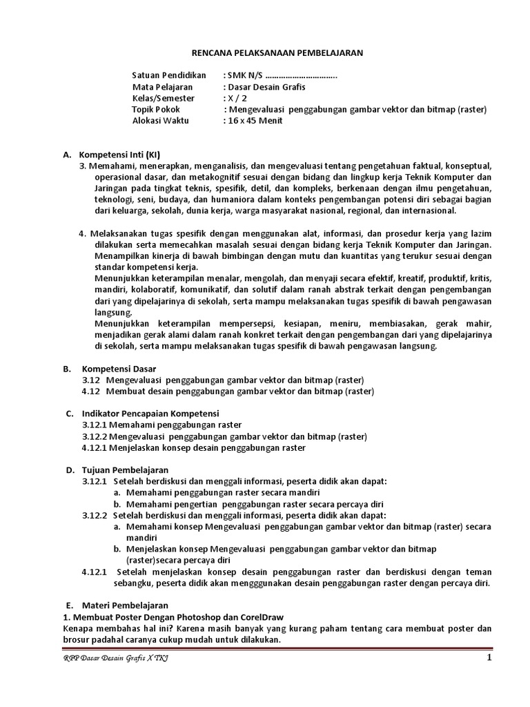 GURU BERBAGI | Rpp 1 Lembar_dasar Desain Grafis_kd 3.7