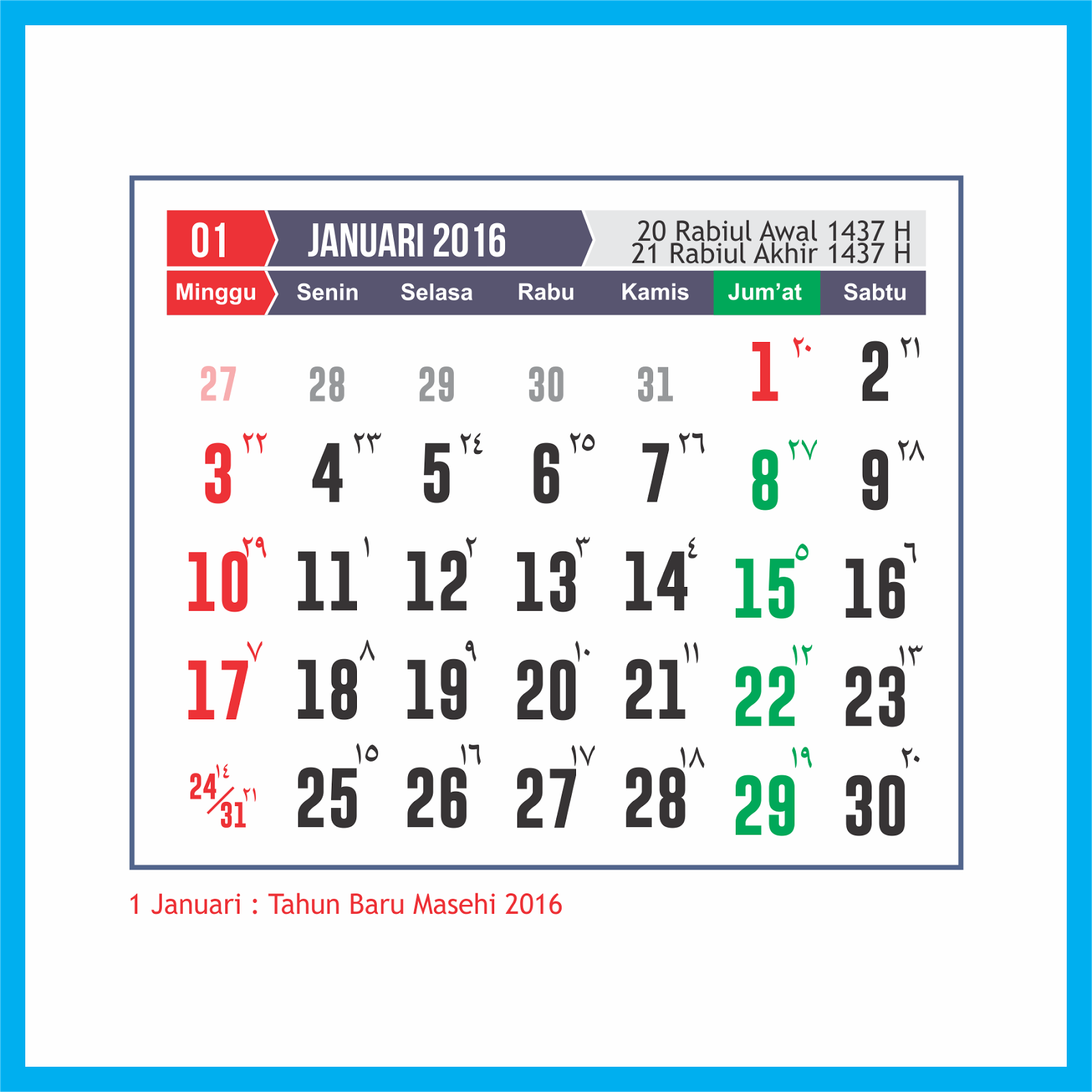 Jual Template Kalender 2016 01, dilengkapi hari libur nasional dan hijriyah - Kota Semarang - fadhiltemplate | Tokopedia