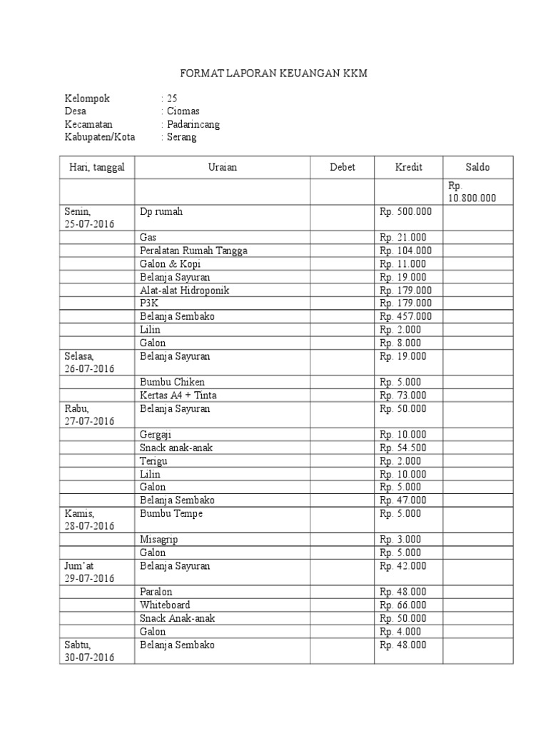 Format Laporan Keuangan Kkm