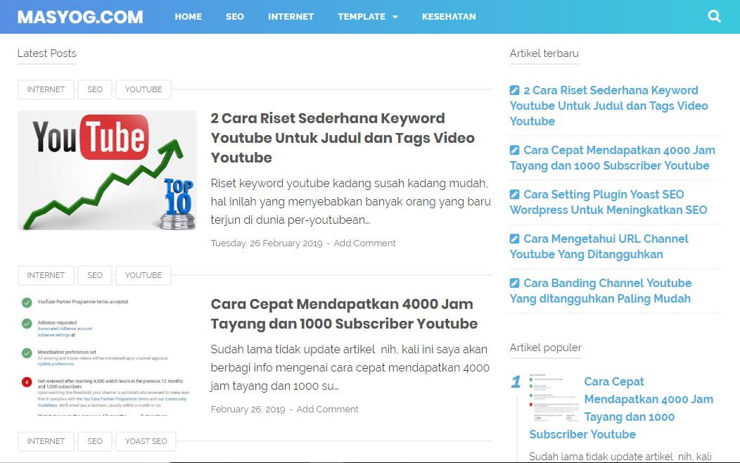 Template Blogspot Premium Paling SEO Friendly - masyog.com