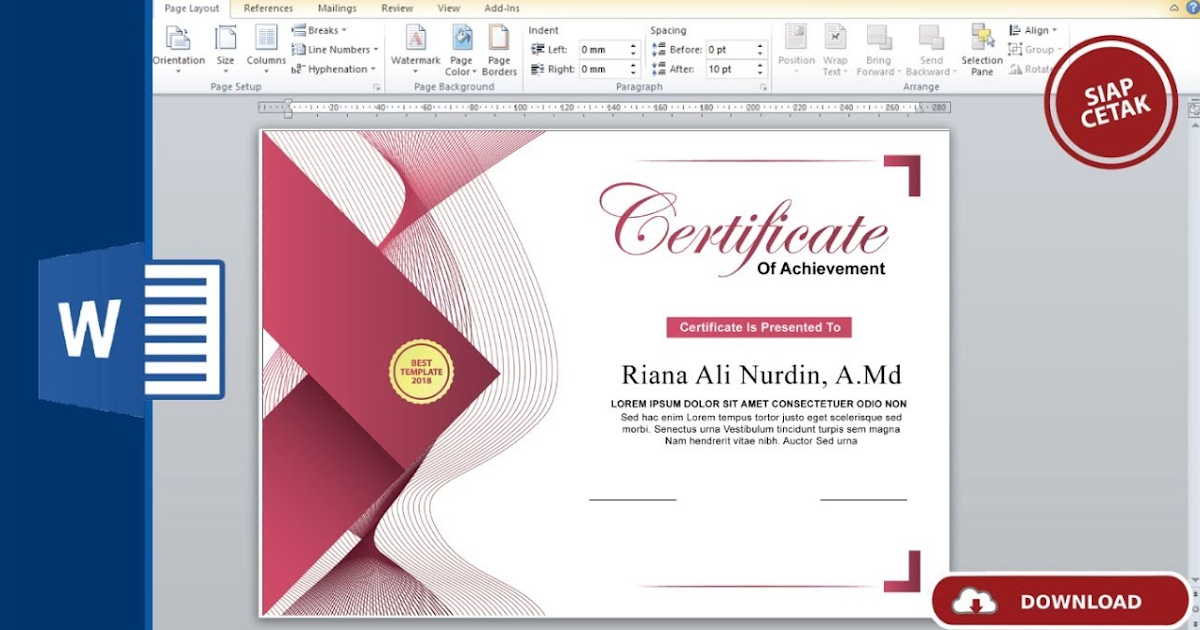 Template dan cara membuat sertifikat di Ms Word - YouTube