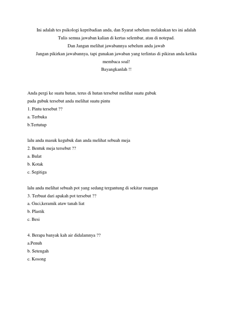 pertanyaan psikologi kepribadian