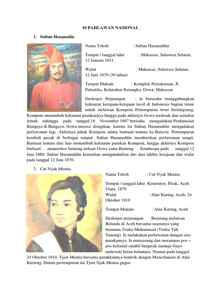 Biografi 10 Pahlawan Nasional Indonesia � Asal Daerahnya – Mamikos Info