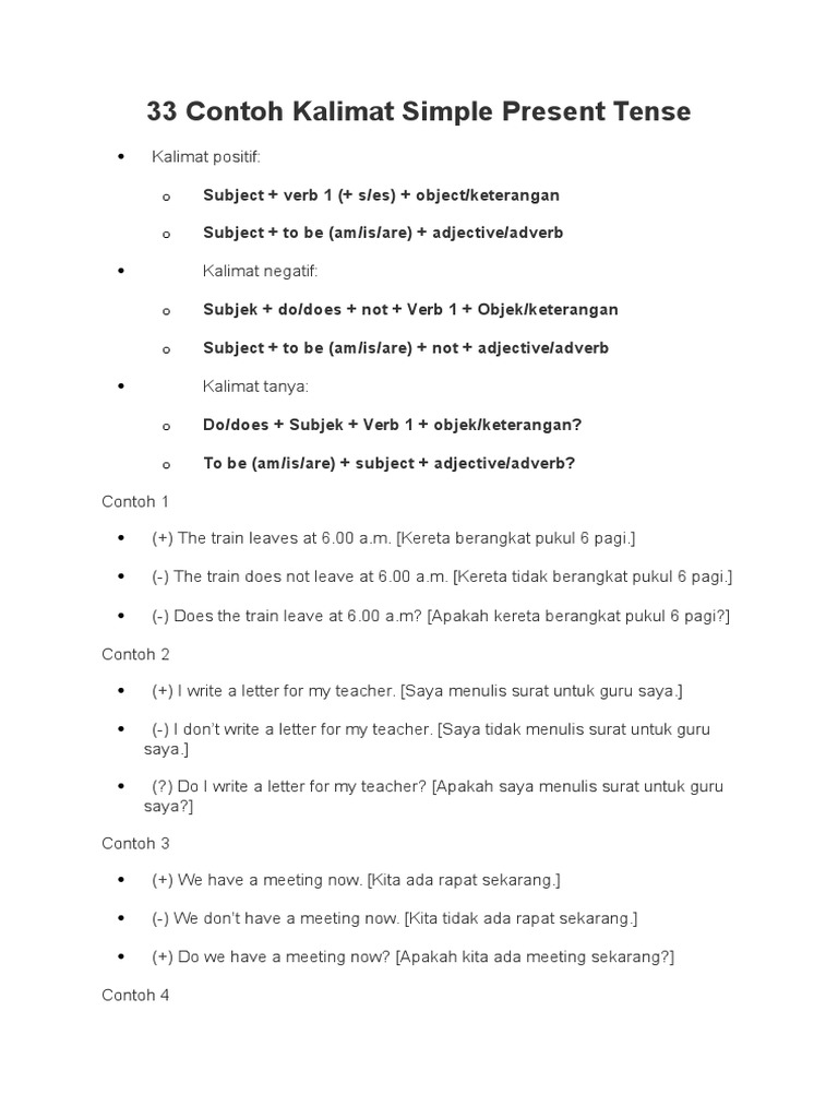 semacam ngini ya contoh kalimat simple present yg verb nya …..masing msing 5 - Brainly.co.id