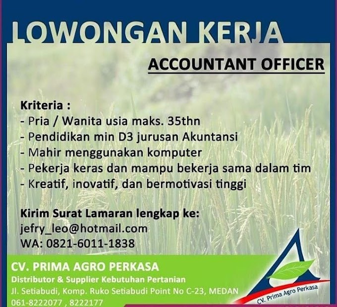Lowongan kerja Staff Akuntansi CV. Indra Indoculture