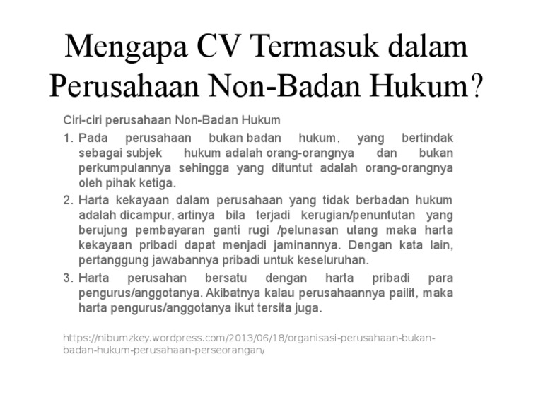 Mengapa CV Termasuk Dalam Perusahaan Non-Badan Hukum