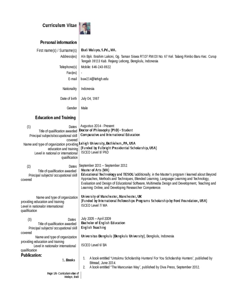 Curriculum Vitae Editan | Indonesian Language | Doctor Of Philosophy
