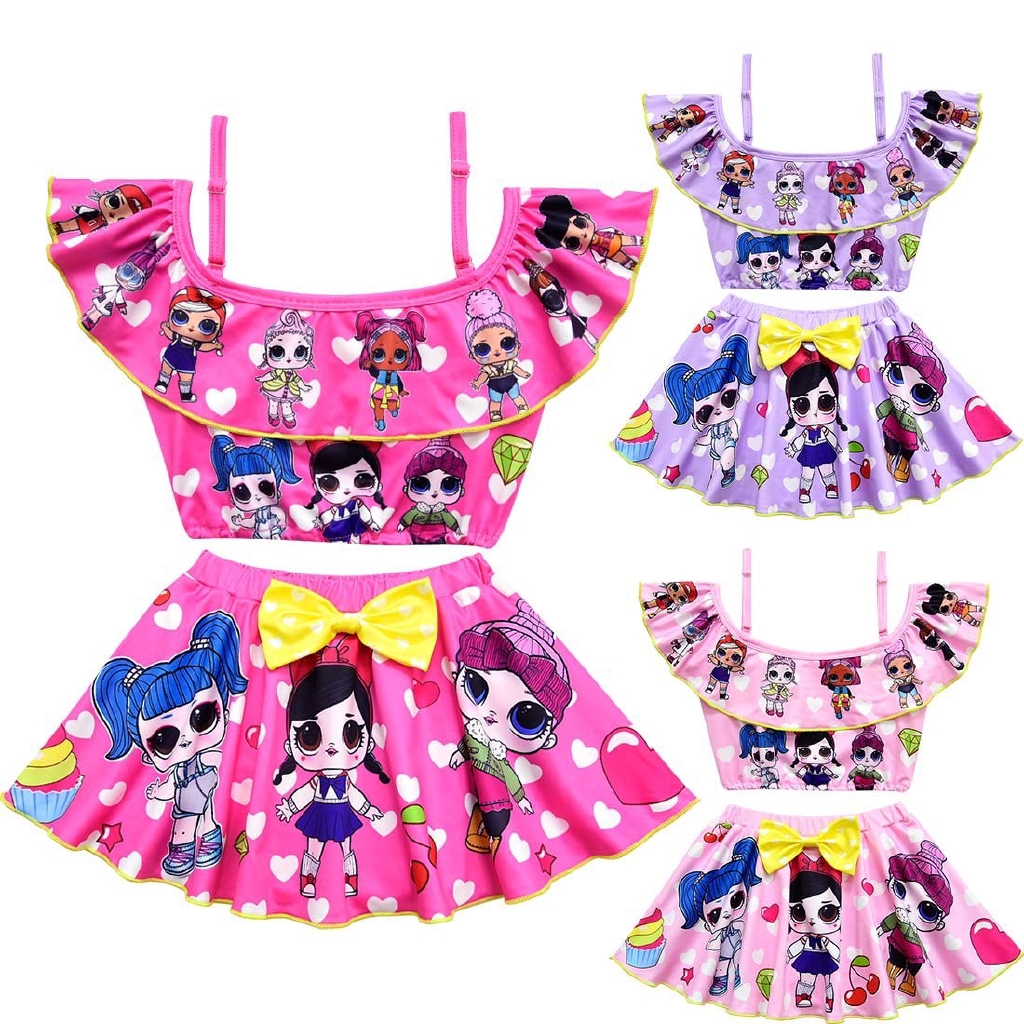 Cute LOL Kids Girls Dress Swimwear Swimsuit Beach Wear Tops+Dress Outfits set | Shopee Singapore