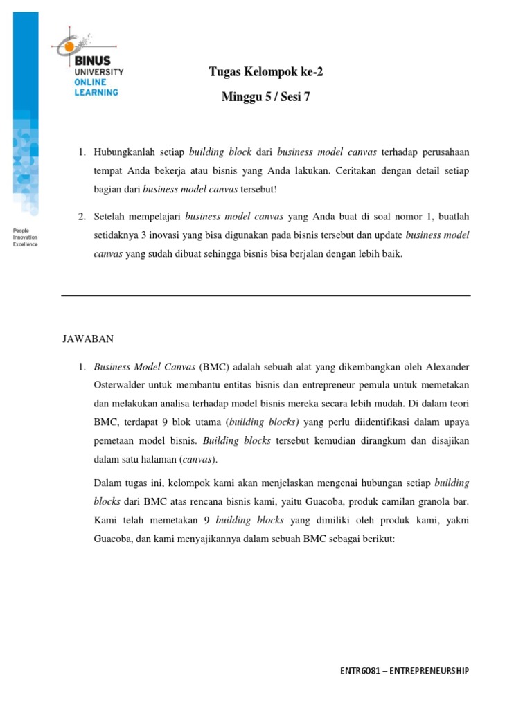 PENERAPAN BISNIS MODEL KANVAS DALAM PENENTUAN RENCANA MANAJEMEN USAHA KEDELAI EDAMAME GORENG Implementation of Business Model C