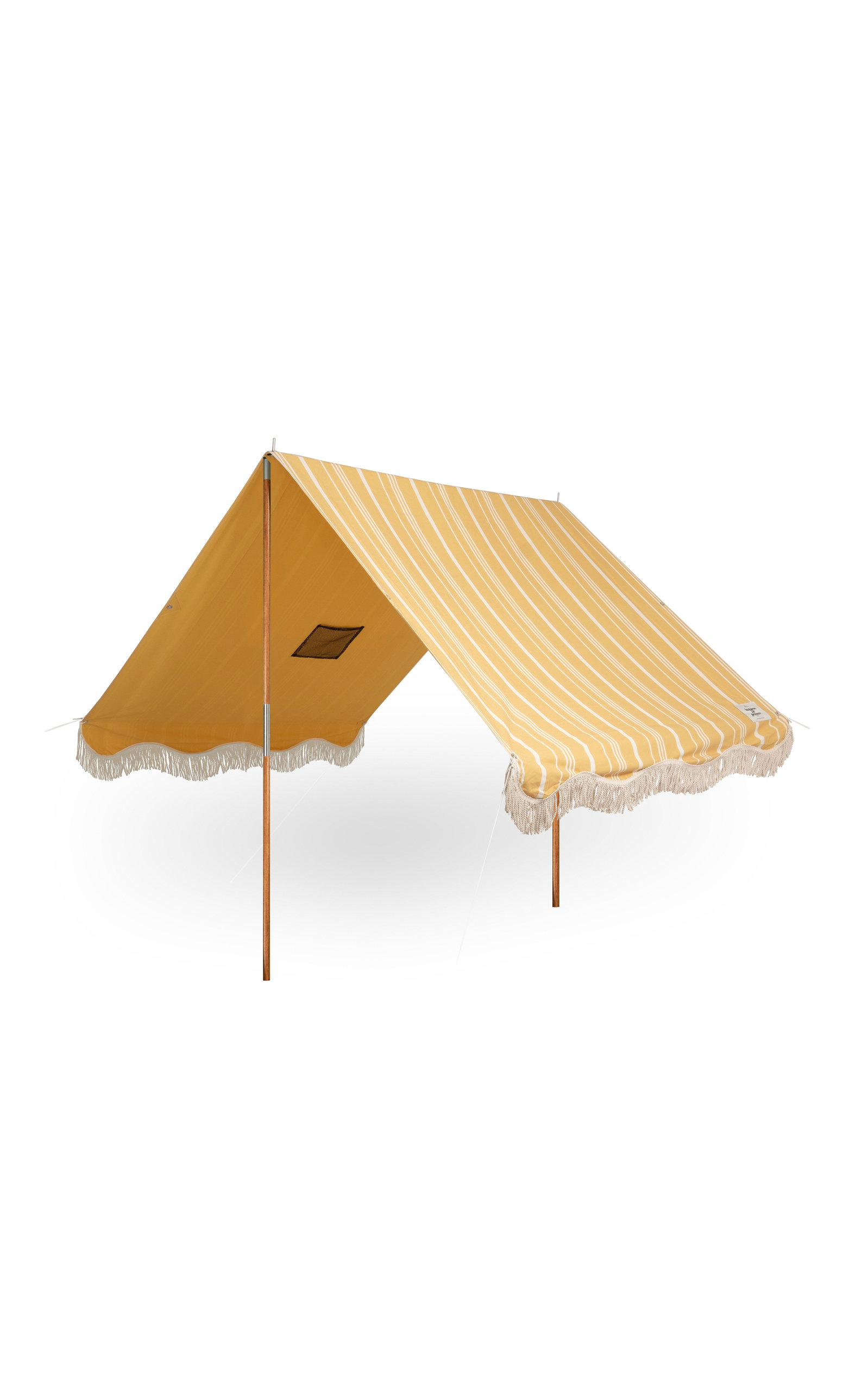 Premium Fringed Striped Canvas Beach Tent By Business & Pleasure | Moda Operandi