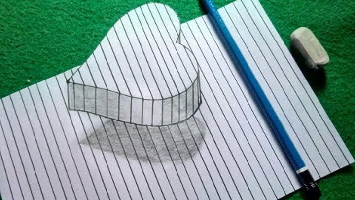 Tutorial membuat gambar 3D dengan pensil | Cara membuat gambar hati 3D - YouTube