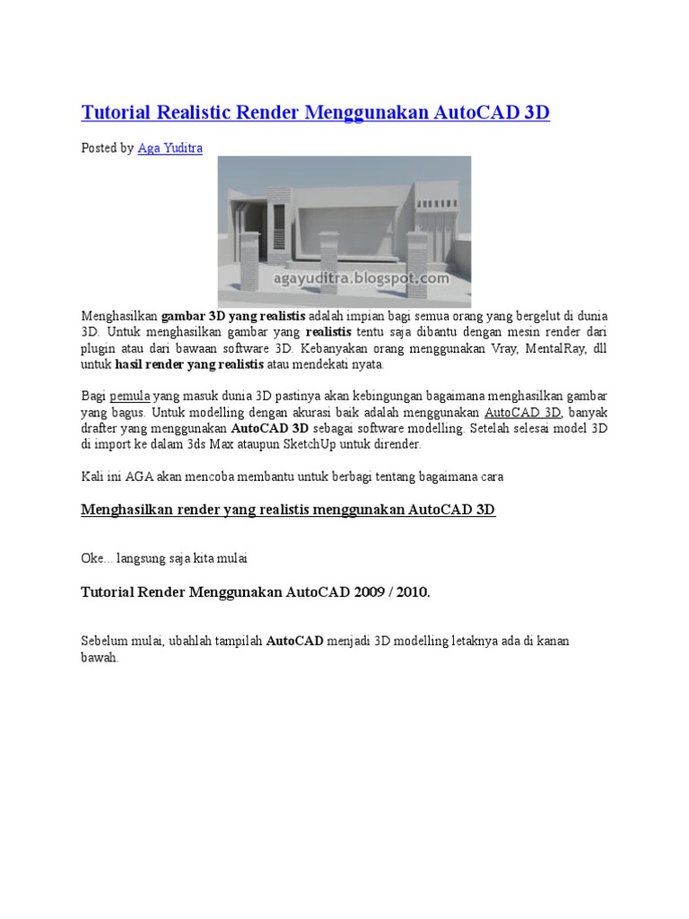Tutorial Realistic Render Menggunakan AutoCAD 3D.docx
