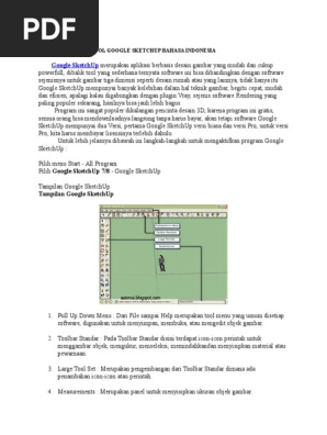 MENGENAL GOOGLE SKETCHUP UNTUK DESAIN dokumen di dapat digunakan, … Keistimewaan inilah yang membuat program Google Sketchup semakin … editing background desain dengan … - [PDF Document]