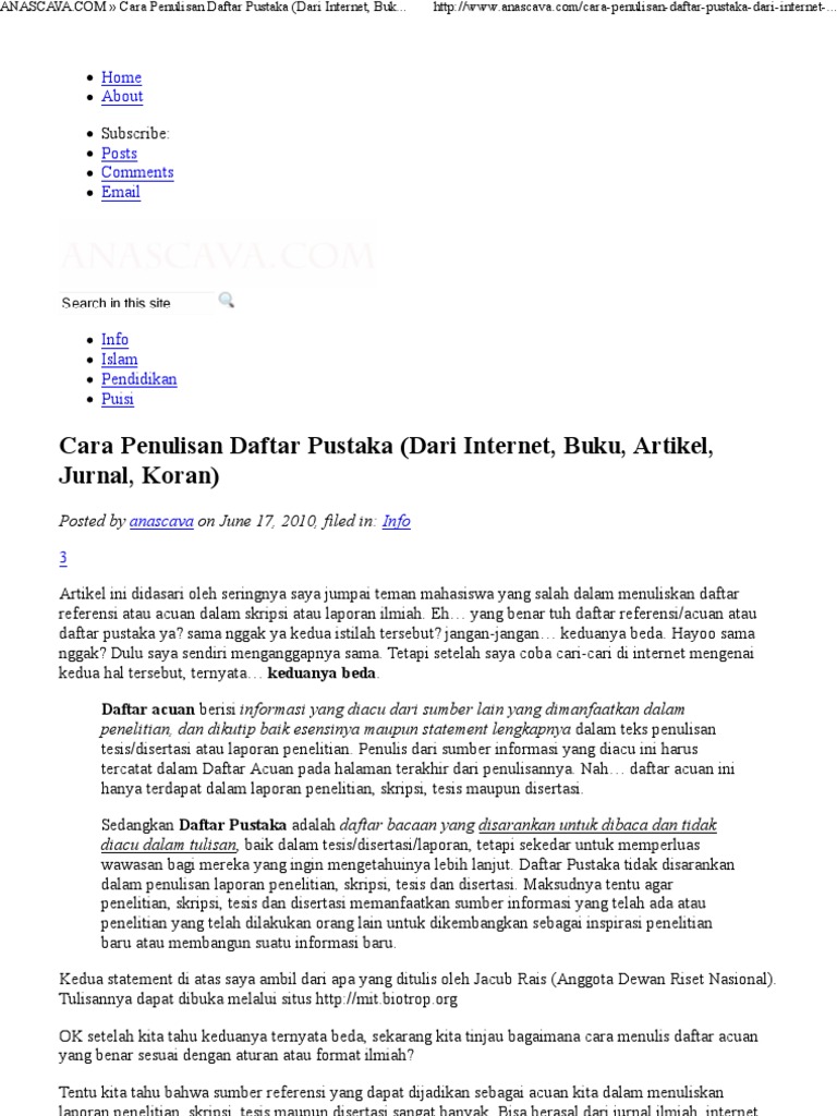 ANASCAVA.COM » Cara Penulisan Daftar Pustaka (Dari Internet, Buku, Artikel, Jurnal, Koran) - [PDF Document]