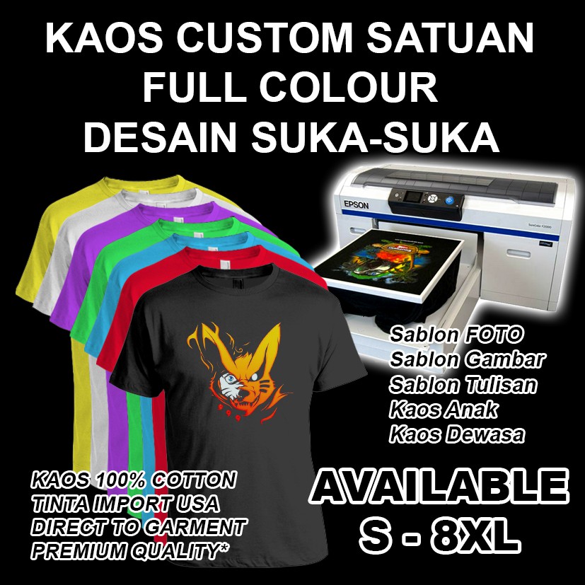 CETAK 1 SISI] KAOS CUSTOM SATUAN DESAIN BEBAS FOTO GAMBAR TULISAN | Shopee Indonesia