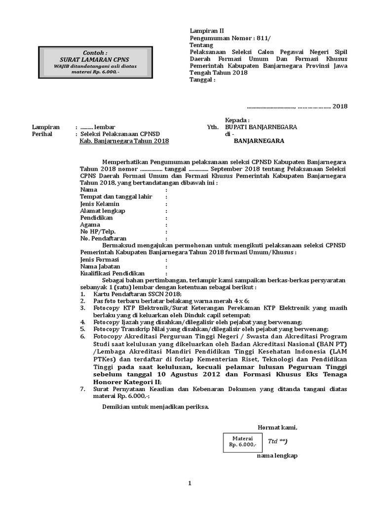 PDF) Contoh surat lamaran CPNS Kab. PALI | hariee as - Academia.edu
