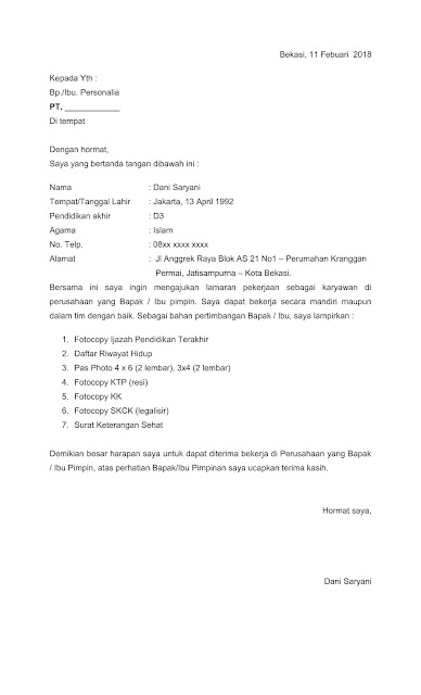 Contoh Surat Lamaran Kerja Yang Lolos Seleksi HRD | KampusUNJ.com