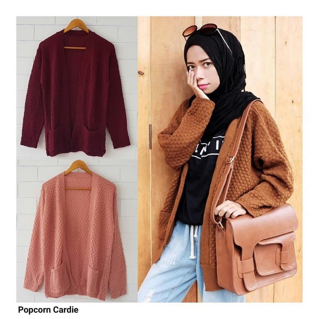 BISA COD - Cardigan Rajut Wanita / Popcorn Cardy Maroon / Popcorn Cardy Pink / Popcorn Cardy Coral | Shopee Indonesia