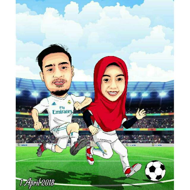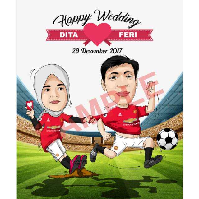 Karikatur Couple Tema Sepak Bola/Karikatur Pernikahan/Karikatur Wisuda/Ilustrasi Wajah/Souvenir Unik | Shopee Indonesia