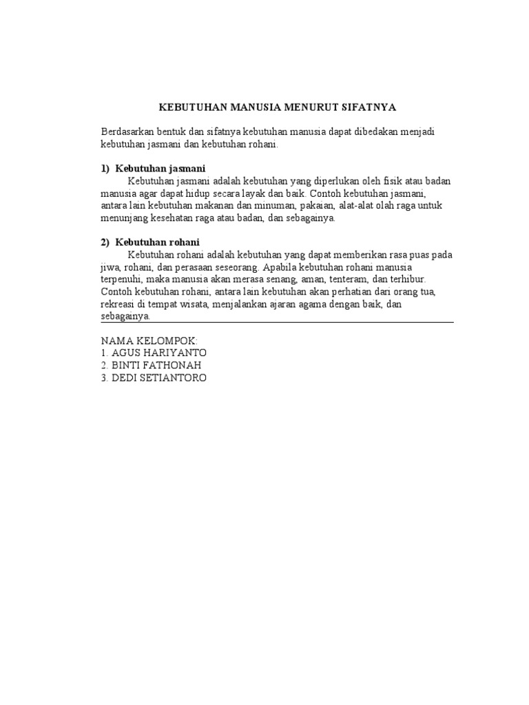 Kebutuhan Manusia Menurut Sifat, Subjek dan Waktunya - REFERENSI BEBAS