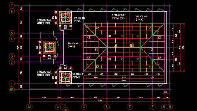 Gambar Kerja Rencana Rangka Atap Kuda-Kuda Baja Ringan File Dwg - Kaula Ngora - Kumpulan Gambar Kerja File Dwg