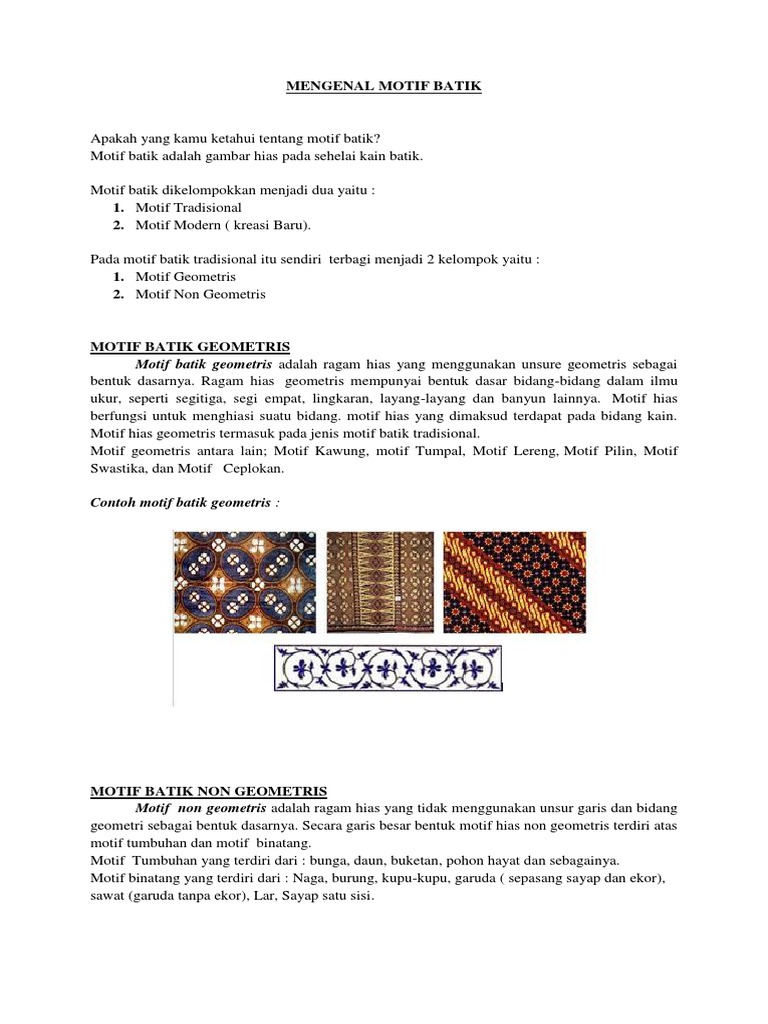 Penggolongan Motif Batik Motif Geometris Non Geometris Bahankain cute766