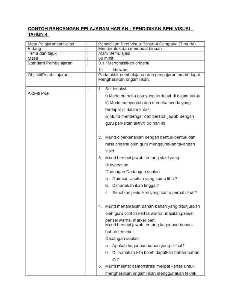 RPH PSV TAHUN 4 (Origami Ikan)
