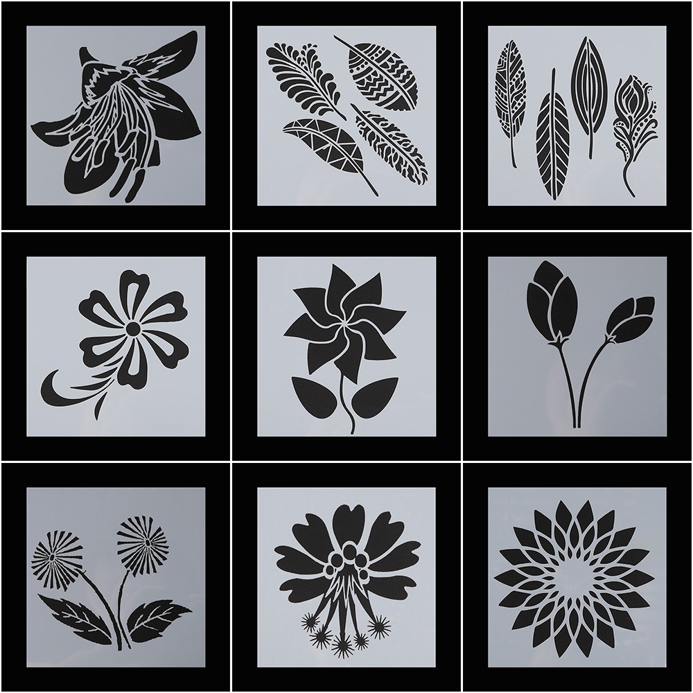 Stensil Bunga Plastik PET Stensil Berongga Menggambar Template Lukisan Grafiti Lukisan Penguasa Peluru Jurnal Stensil Dapat Digunakan Kembali| | - AliExpress