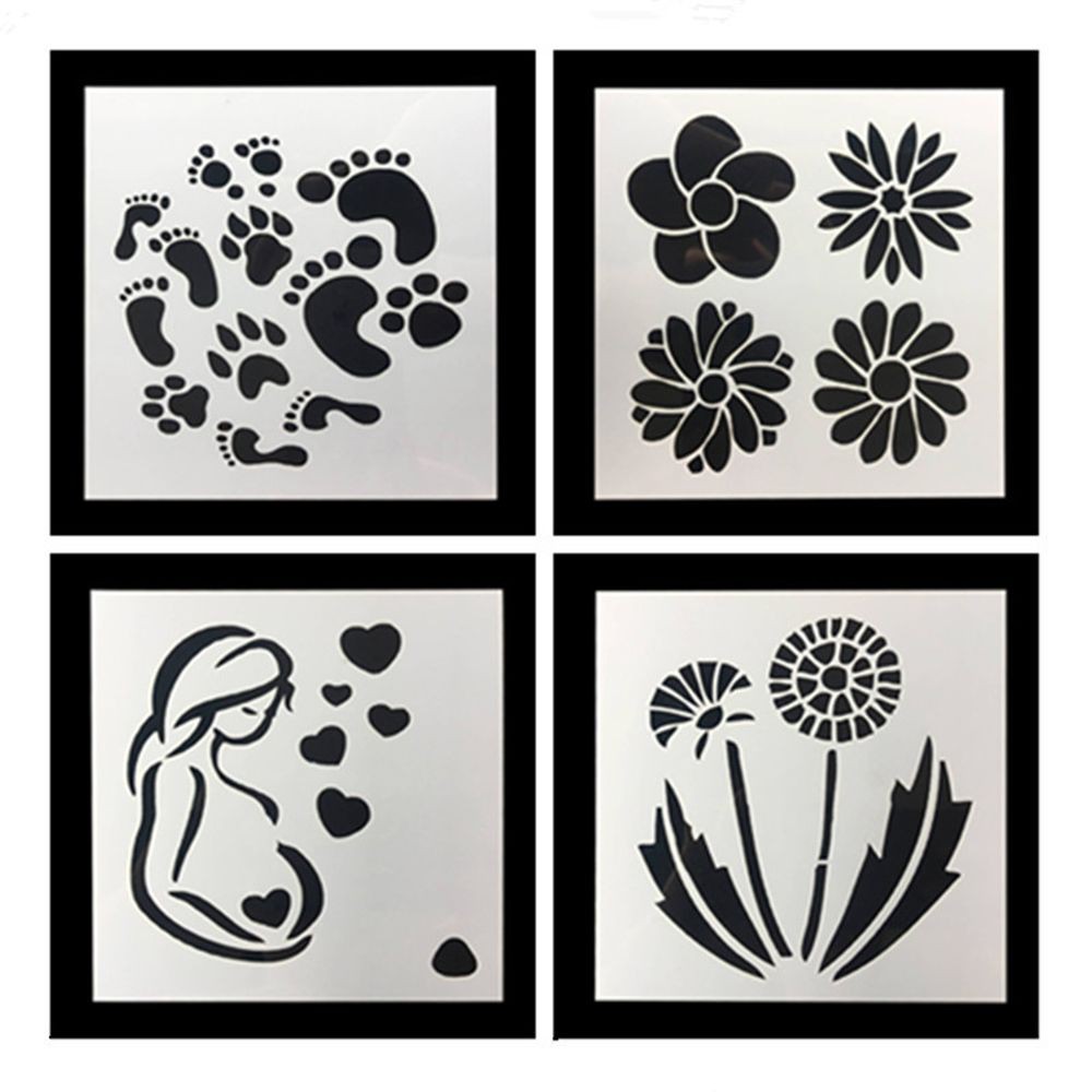 5.1X5.1 Inci) PET Plastik Stensil DIY Pola Copy dan Cat Jejak Semprot Kabut Contoh Gambar Bunga|Stamp| - AliExpress