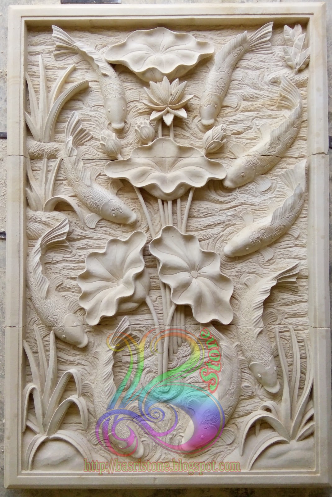 Jual ukiran batu paras motif ikan koi - Kab. Gunungkidul - fauzan relif | Tokopedia