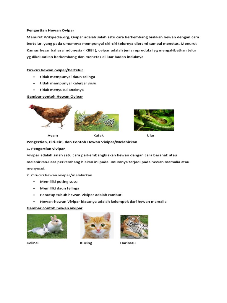 Ciri - Ciri Hewan Ovipar,Vivipar Dan Ovovivipar Dan Sebutkan Hewannya - Brainly.co.id