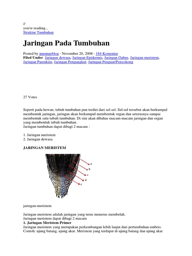 Fungsi Jaringan Meristem Tumbuhan. Pengertian Contoh Materi Soal Ujian pdf