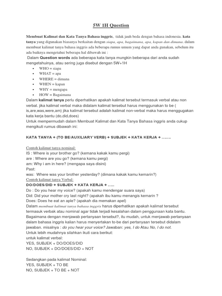 Contoh Kalimat Tanya Bahasa Inggris 5w 1h Daniarta – Cute766