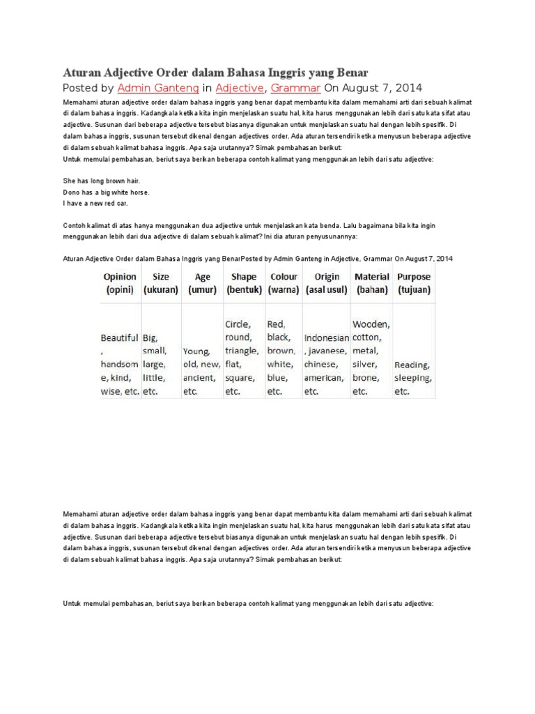 Adjective Order : Pengertian Dan Contoh Lengkap Dalam Kalimat Bahasa Inggris | Teks.Co.Id