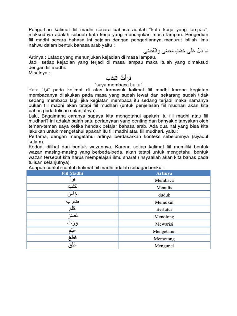 Contoh Fi’il Madhi - Fi’il Mudhori’ -… - Belajar Bahasa Arab | Facebook