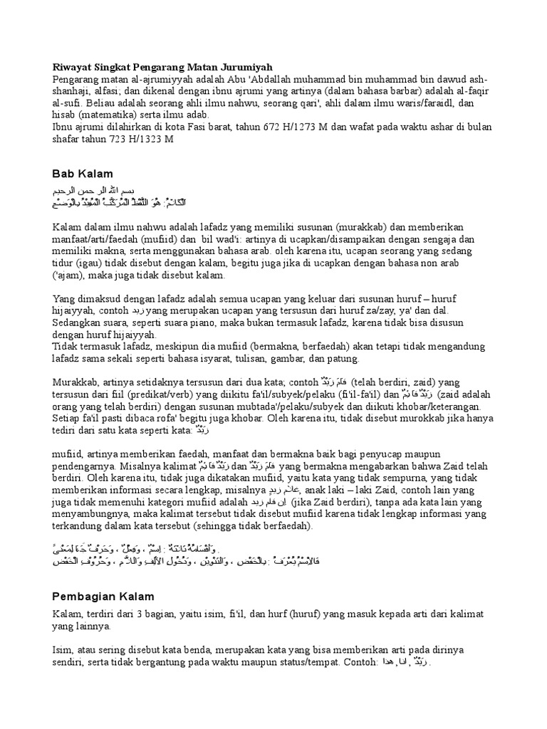 Terjemah Matan Kitab Al-jurumiyyah