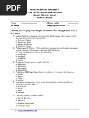 Soal Uts Kelas 5 Semester 2 Tema 7