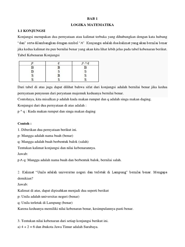 Bab 1 Logika Matematika 1.1 Konjungsi