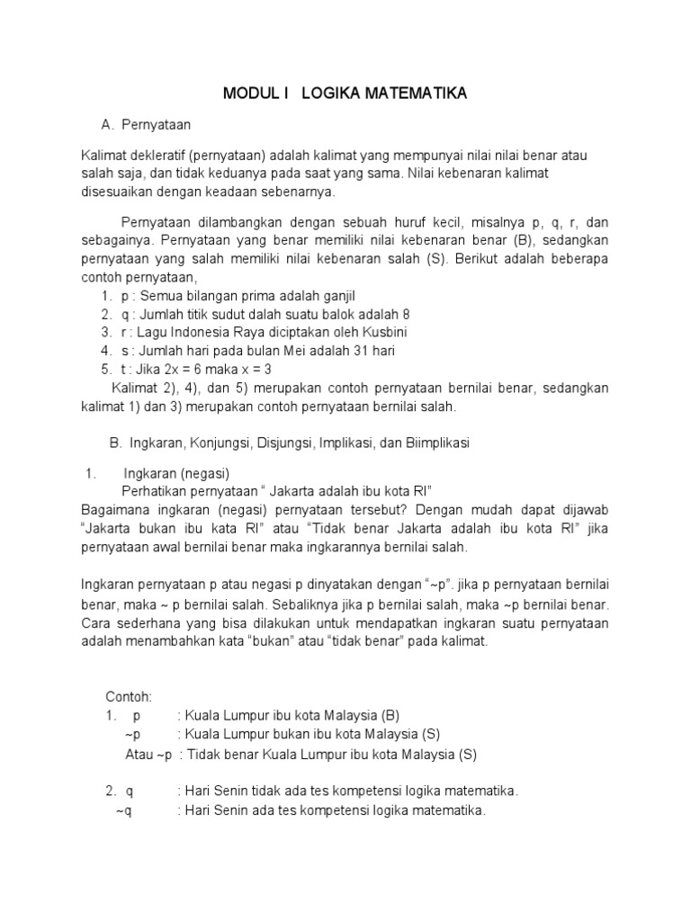 PDF) LOGIKA MATEMATIKA (Pembelajaran Matematika SMA | Nurika Oktavia - Academia.edu