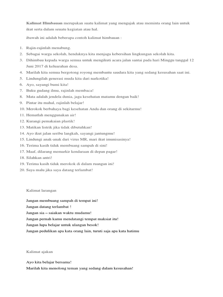 Contoh Kalimat Himbauan - Pengertian, Karakteristik, jenis dan Contoh