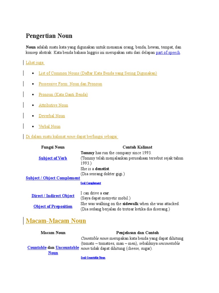 DOC) Pengertian, Macam dan Contoh Kalimat Noun (Kata Benda Bahasa Inggris | isma yadi - Academia.edu