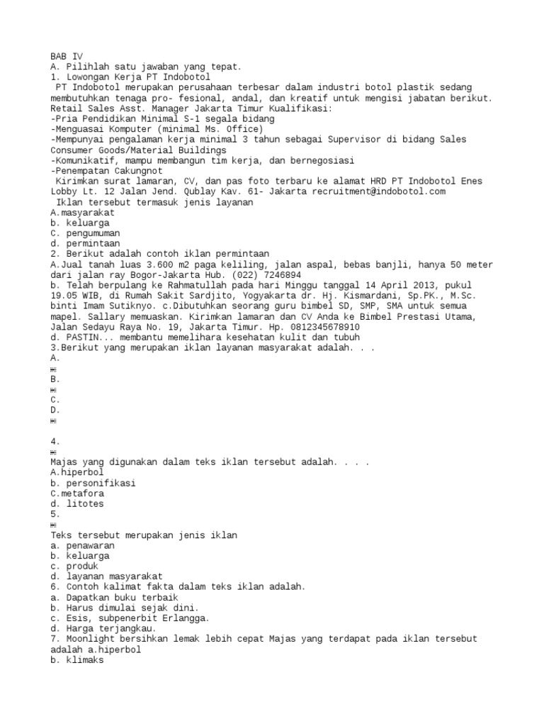 50 Contoh Soal Teks Iklan Pilihan Ganda beserta Jawabannya Kelas 12