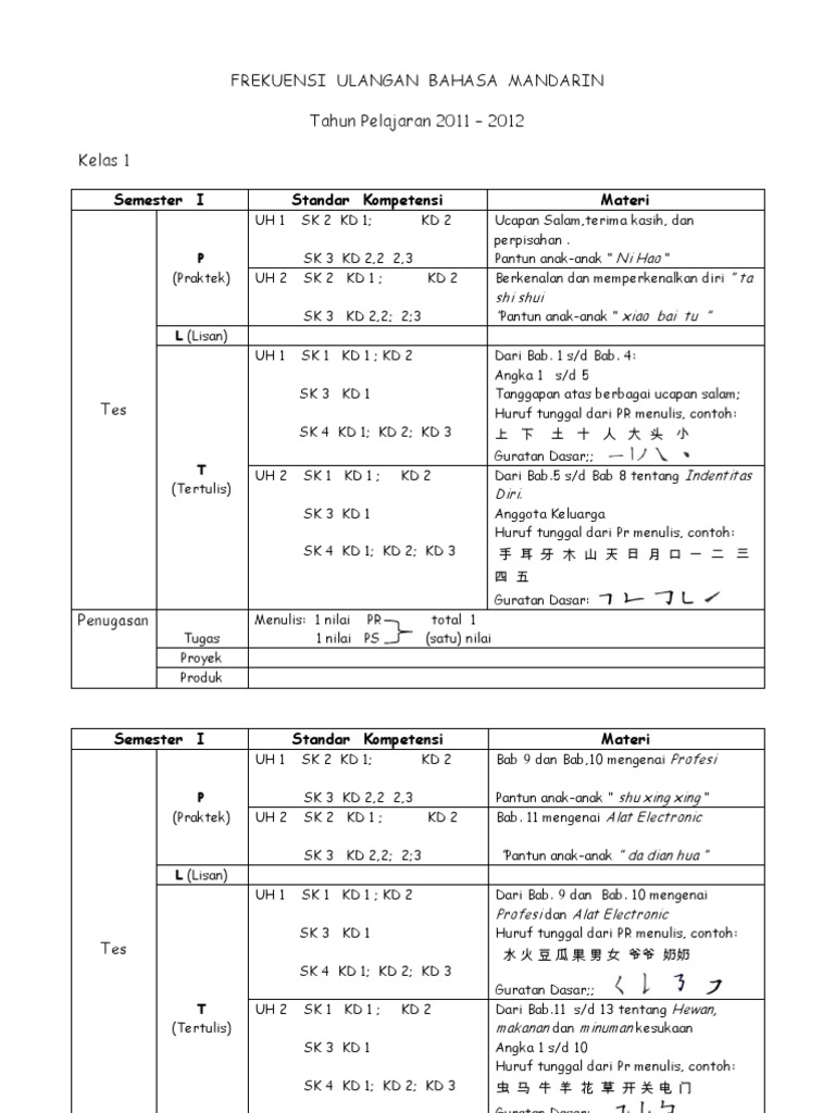 Silabus Bahasa Mandarin SD Kelas 1 – 6 Lengkap - SoalUjian.Net