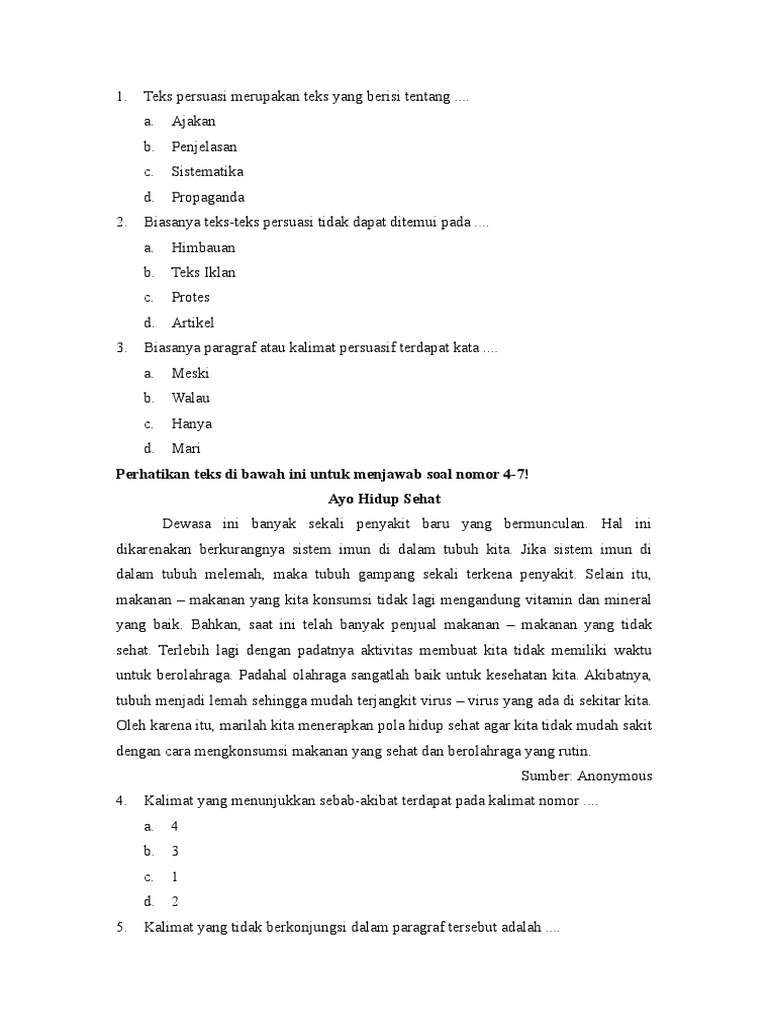 Soal Teks Persuasi Kelas 8