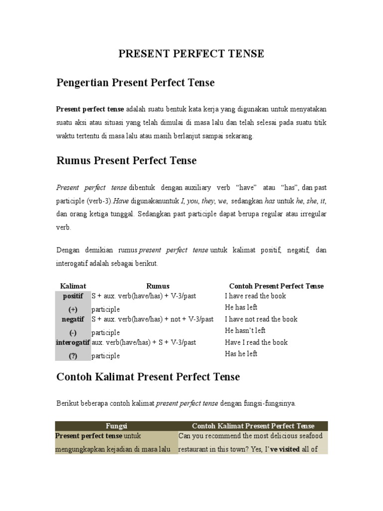 Penjelasan Present Perfect Tense Rumus, Fungsi, Dan Contoh Kalimat - Fasih Bahasa Inggris
